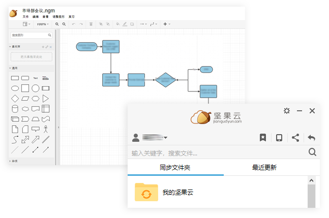 坚果云绘图支持在线编辑流程图、思维导图、原型图、网络拓扑图等多种图形图表。