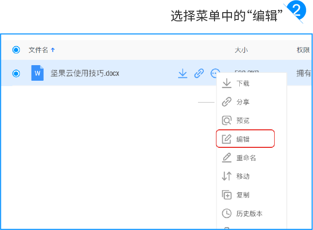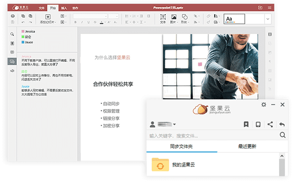 使用坚果云在线Office,在坚果云中可以直接打开并编辑文件,省去导入导出的繁琐。支持Office三件套,覆盖办公所用的绝大多数场景。